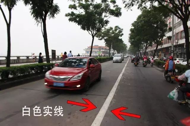 这种白色实线,是用来区分同方向的不同车道,路口的白色实线等同于隔离护栏,车辆跨、压实线、转弯属于违法行为。
