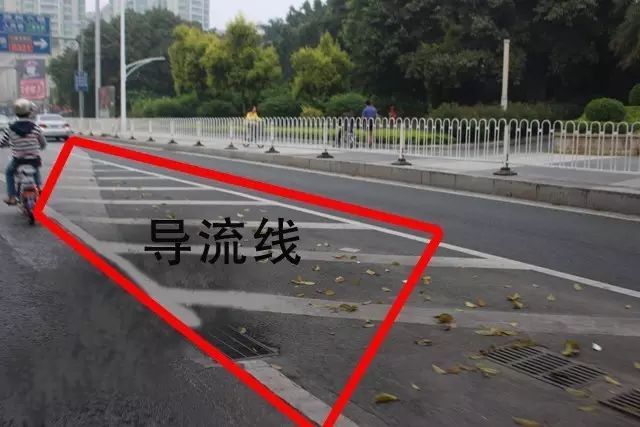 这类型的导流线,是表示车辆必须按导流线行驶在相应的车道,不得压线或越线行驶,更不能停车。