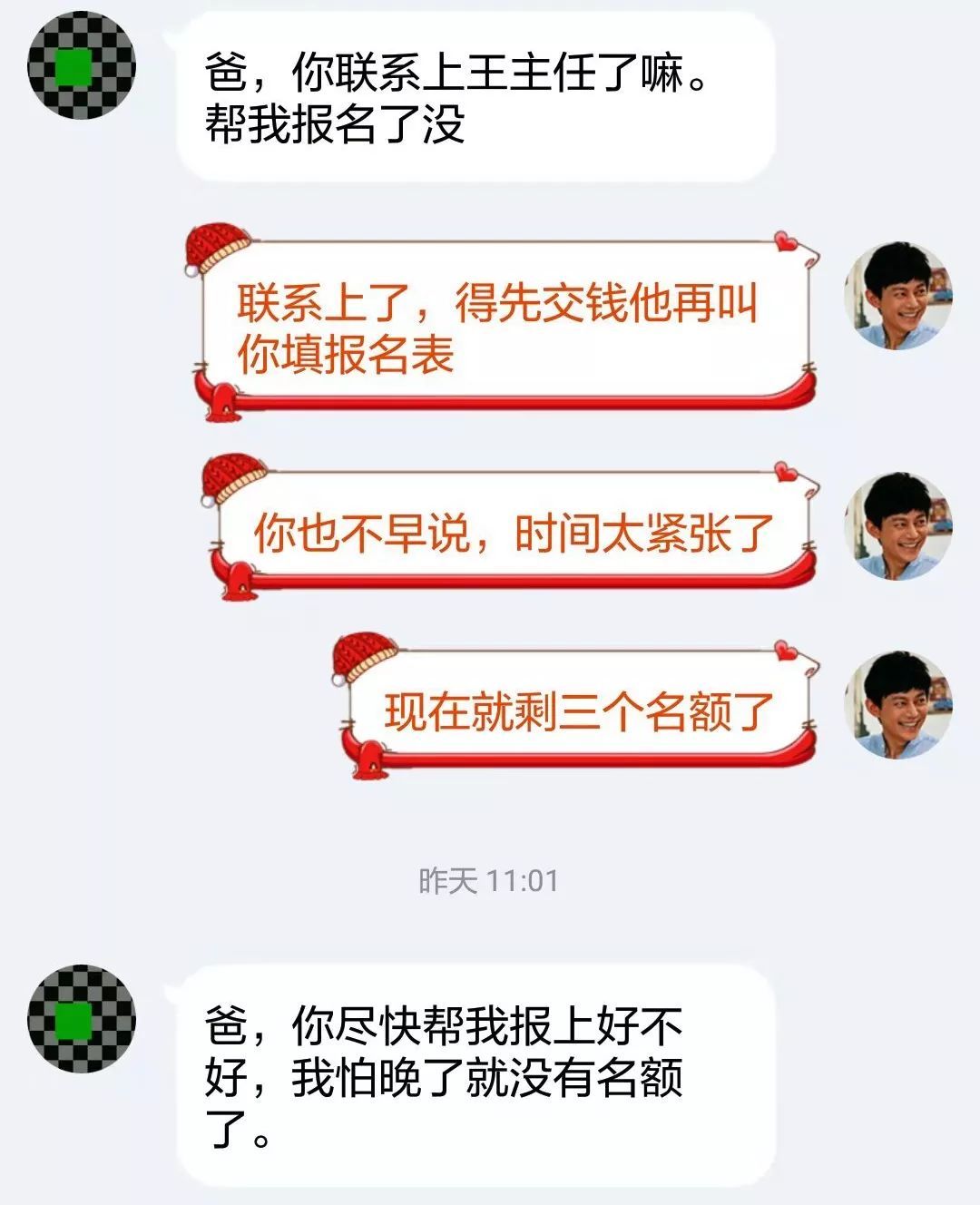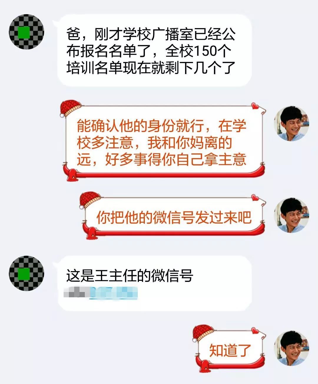 一是购买个人信息,量身定制骗局。骗子会从非法渠道购买学生及其家长的信息,再冒充学生,用短信、QQ、微信等联系方式发信息给家长称想报名参加培训班、夏令营等,需要交纳费用。由于信息开头直接称呼“爸”、“妈”,并自报姓名,很多家长看到信息会放松警惕。