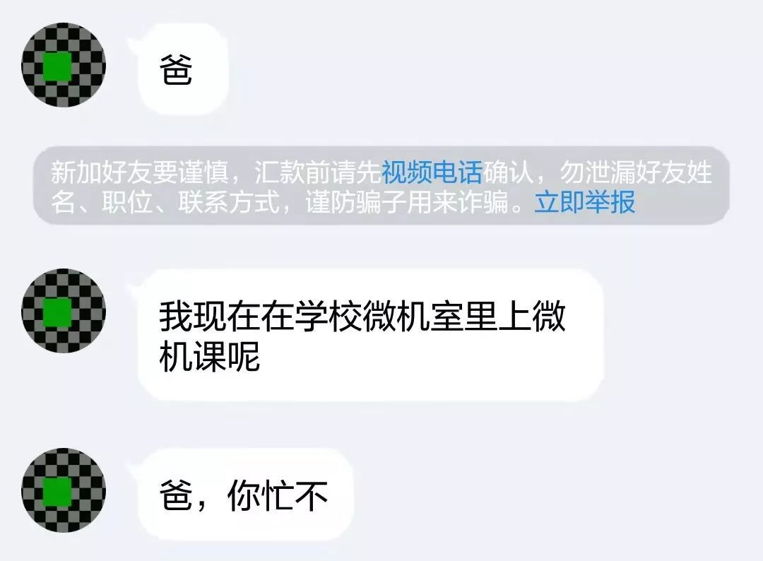 1、遇到这种陌生账号以自己孩子名义发来的信息,一定要提高警惕;