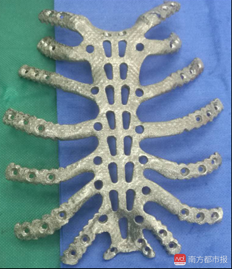 南都讯 记者李榕 通讯员王有钰 家住深圳的刘先生今年70岁,因胸骨有肿物2年多,这半年来增大了,于是辗转深圳多家医院就诊。经多方打听,最终来到于深圳市第二人民医院,找到了胸外科钱有辉主任团队。经过治疗,刘先生胸内肿瘤切除,放入铁合金胸骨,成了深圳首例3D“钢铁侠”。