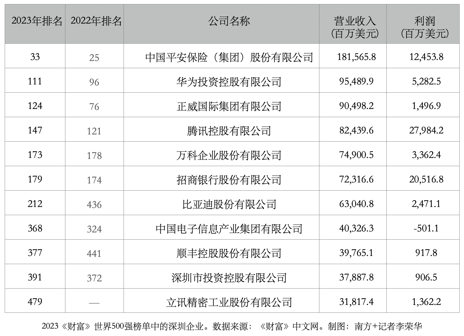 此前不久,2023年《财富》中国500强榜单对外发布,有40家深企入榜,占总数7.8%。《财富》中国500强企业榜单是《财富》世界500强企业榜的中国企业参照榜单,也让读者了解到未来成为世界500强的潜力企业。