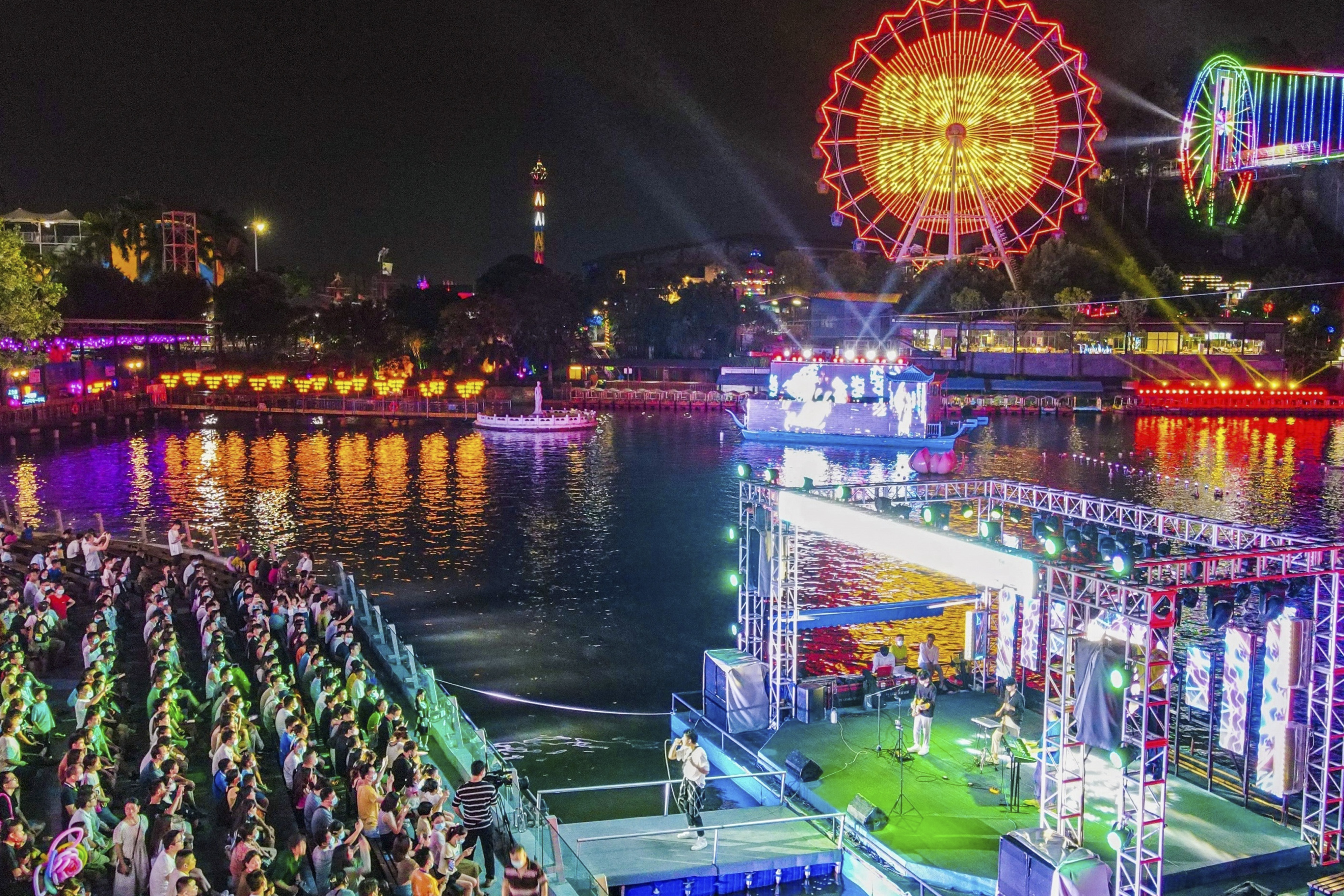 近年来,夜间经济快速发展,五一期间,常平隐贤山庄特地为游客打造了一场专属音乐节。4月29日至5月3日,常平隐贤山庄音乐节将持续带来视听盛宴,每天除了灯光秀外,还有不同的音乐人、网红歌手轮番登场演绎。4月30日,拥有百万粉丝的网红歌手张东尼也将现身隐贤山庄,为游客带来多首经典作品。