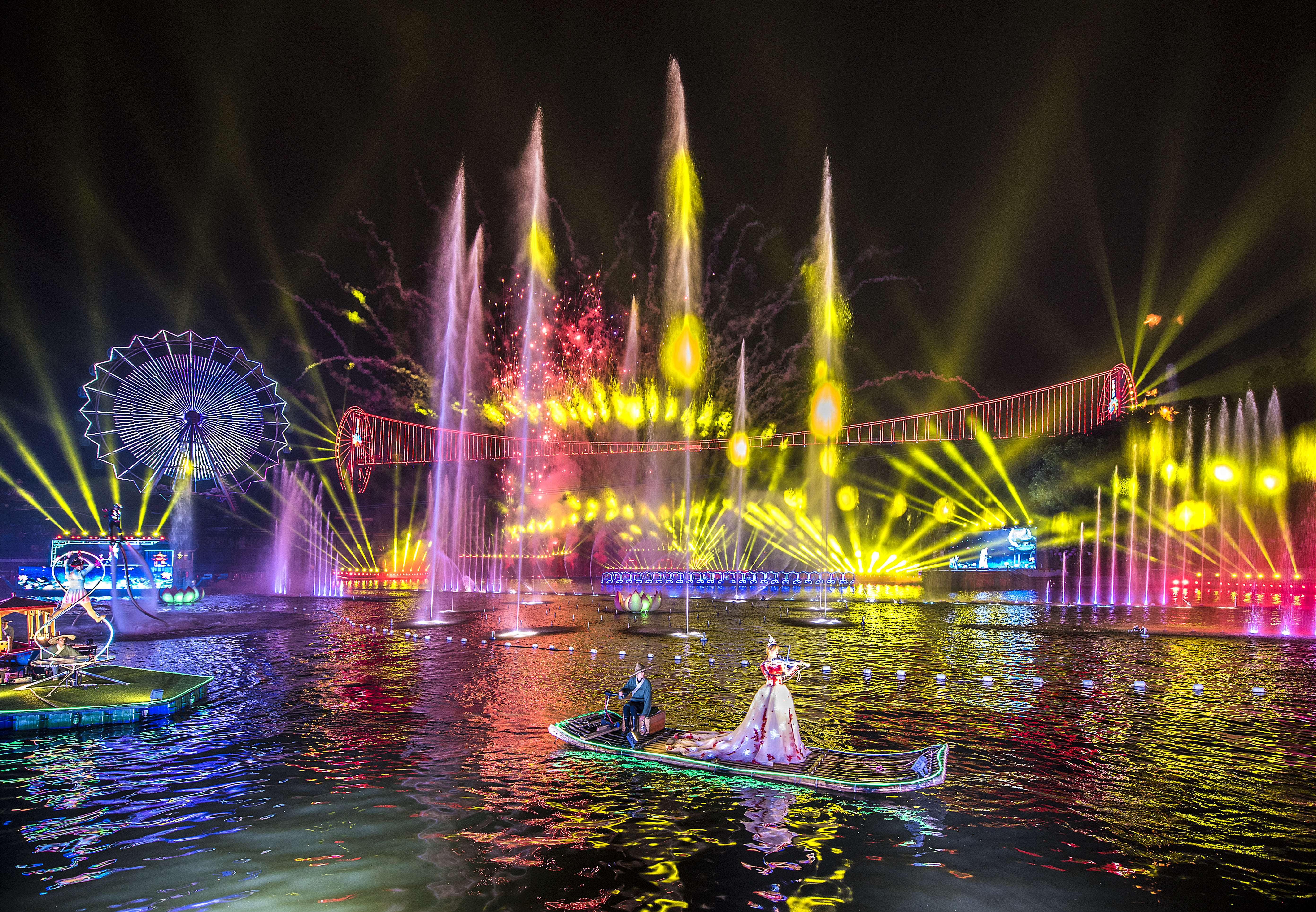 隐贤山庄音乐节是疫情稳定后景区举办的首个大型文旅活动。届时,投资千万余元打造的《蝶影》水舞灯光秀也将精彩上演。该作品通过水面演艺、灯光、水幕喷泉、投影、音乐等形式进行演绎,以其恢弘壮观的场景和表演,让游客在沉浸式视觉盛宴中,感受爱情的真谛和生活的美好。