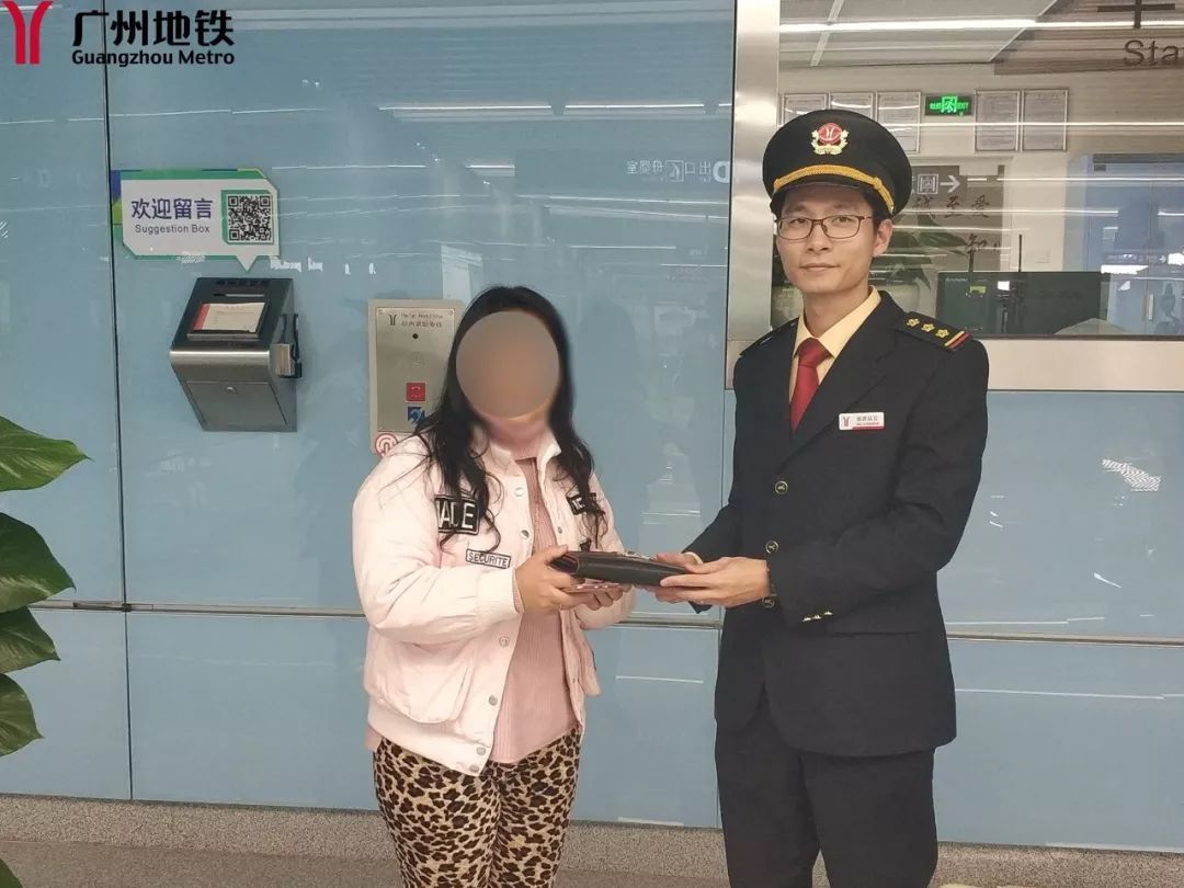 当天上午7点多,一名神色紧张焦急的女乘客匆匆找到从化客运站员工,表示刚才下车时把黑色钱包落在了车上,从化客运站值班站长陈全斌立即根据乘客的描述通知东风站寻找失物。东风站值班员罗雯焕接到通知后,正好列车刚到站,便通知站台岗殷玉婷清客时加强留意失物。经过仔细寻找,殷玉婷在列车座位上发现一个黑色钱包。当班值站梁伟斌到与罗雯焕共同确认钱包外部特征与从化客运站所寻物品相似,内有3100元现金、红包若干、身份证、银行卡等重要证件,于是致电从化客运站进一步确认失物,经确认无误后通知乘客到东风站领取。