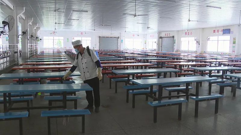 学校的清洁工人正在清理校园内的落叶和割除杂草,宿管阿姨在为每一间宿舍进行仔细的清扫以及消毒,饭堂的职工在忙着清洁、消毒以及为做好开学后学生错峰就餐、排队取餐、错位就餐等工作进行布置和张贴提示标识。同样忙碌的还有老师们,他们率先到岗做好学生返校的各项准备工作。