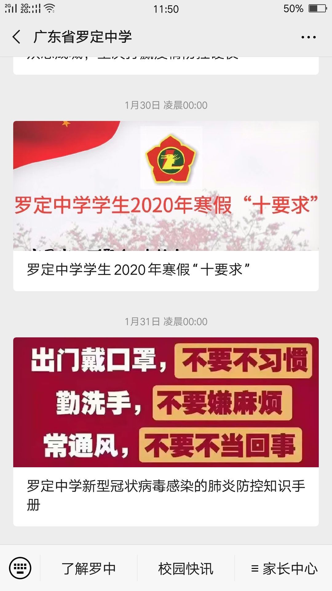 罗定市通过家校通平台、微信、短信等多种方式,及时向师生、家长发布相关疫情防控要求、防控知识和权威信息,正确认识疫情,做到不造谣、不信谣、不传谣,不走亲、不聚会、不宴请、不串门,注意个人卫生,避免到人多密集的场所等,全市各级各类学校拉挂横幅500多条,制作防控疫情宣传专栏80多个,派发防控疫情宣传海报1200多份、宣传单张45000多份,并采用电子屏不间断滚动播放宣传标语,利用校园广播不停播放防控宣传知识。
