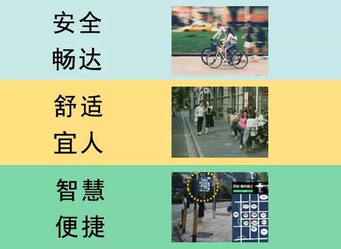 以慢行交通升级改善作为抓手,系统开展慢行系统规划建设,整体提升既有步行和自行车道出行品质,实现安全畅达、舒适宜人、智慧便捷三大目标。