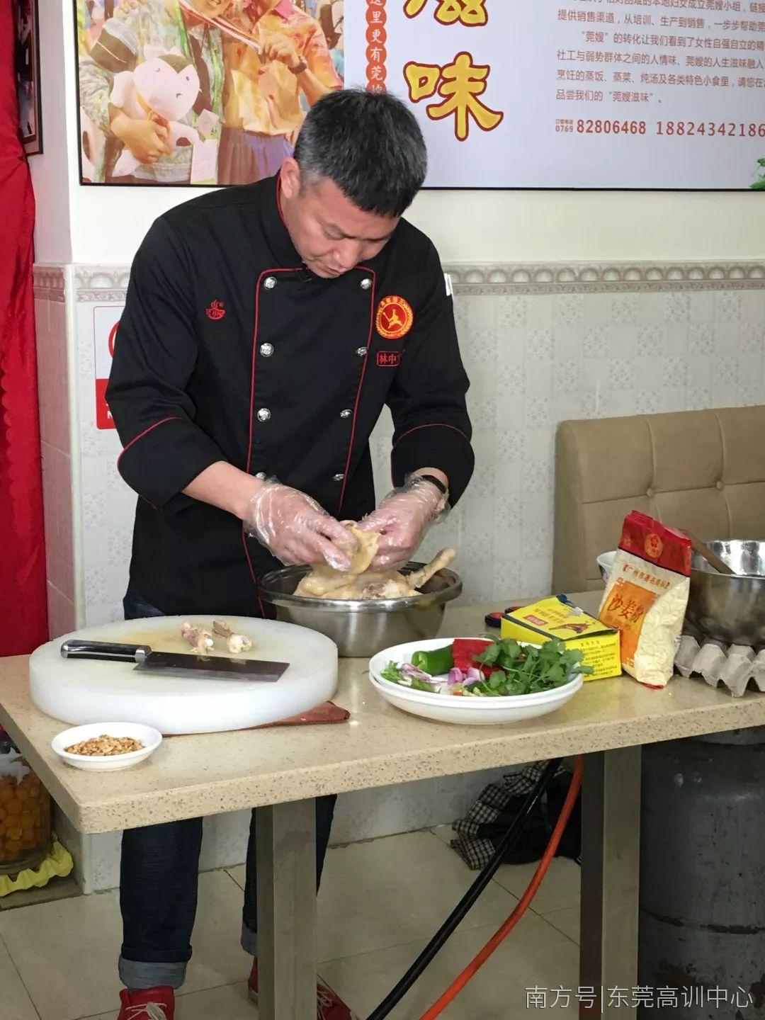林老师现场演示了咖喱土豆、盐焗手撕鸡和素菜金钱福三个菜式,这三个菜式简易而不简单,足以作为一个餐馆的招牌菜式。林老师鼓励莞嫂们学习技能,提升自己,为就业或创业做准备。