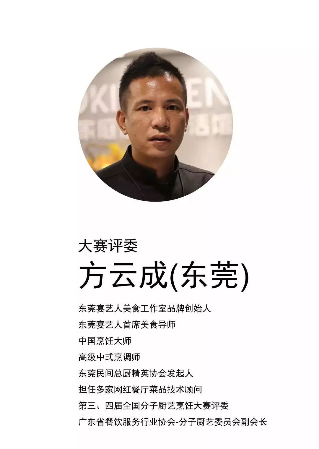 裁判组成员包括联合利华饮食策划——南区厨务行政总厨何卫东、西班牙GastroLife公司创始人Alex Molina、创意中国菜烹饪体系创始人余梅胜、广州米其林一星“江”餐厅主厨黄景辉、新加坡G9分子冰淇淋创始人钟幸龙等多位世界各地名厨,组成数十人的评委团,专业性和严谨度不言而喻。