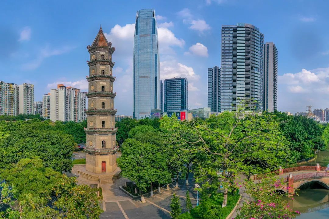 文塔始建于乾隆五十九年,是七层六角形青砖塔, 2008年被定为广东省重点文物保护单位。行走在文塔公园,古塔晨沐朝晖,夜映霓虹,周围绿树成荫,鸟儿啁啾,河水潺潺,古迹与自然之美交映成趣。文塔公园连接着海骏达城和天佑城两大城市综合体,为容桂城央商圈增添了独特的历史和文化韵味。