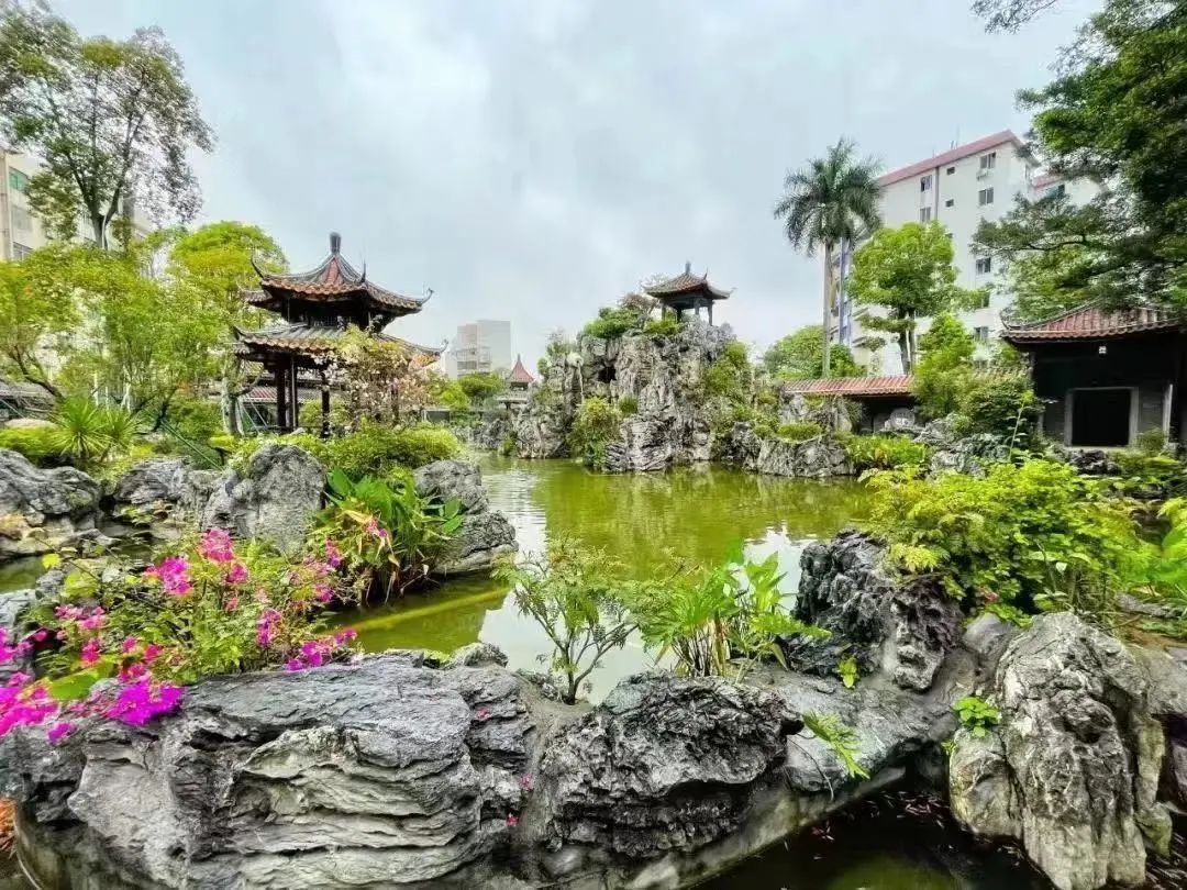 园林景壁步步生莲,石山廊亭幽远深静。公园内有据载始建于南宋时期的观音堂和白莲池等著名景点,建筑以岭南特色仿古庭院风格为主,有百莲壁、莲香榭等15个山水庭台大型景观,还“藏”有一所书苑、一个展厅。