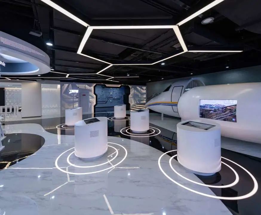 五层是儿童体验互动性最突出的区域,除了设置有最强大脑、5G体验、绘美顺德、工业科普和机器人大世界等互动挑战小游戏外,还摆放了一架长达5米的飞机模型,趣味性十足。