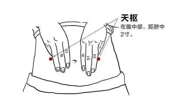 取穴方法:天枢穴属于足阳明胃经,是手阳明大肠经募穴,位于腹部,横平脐中,前正中线旁开2寸。