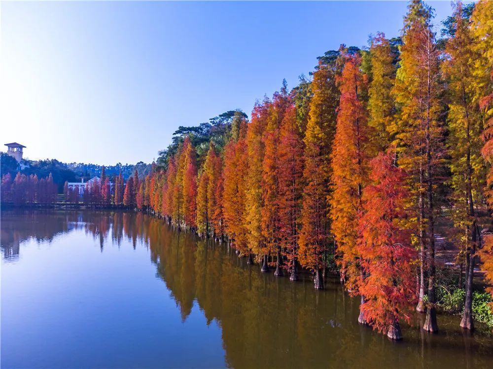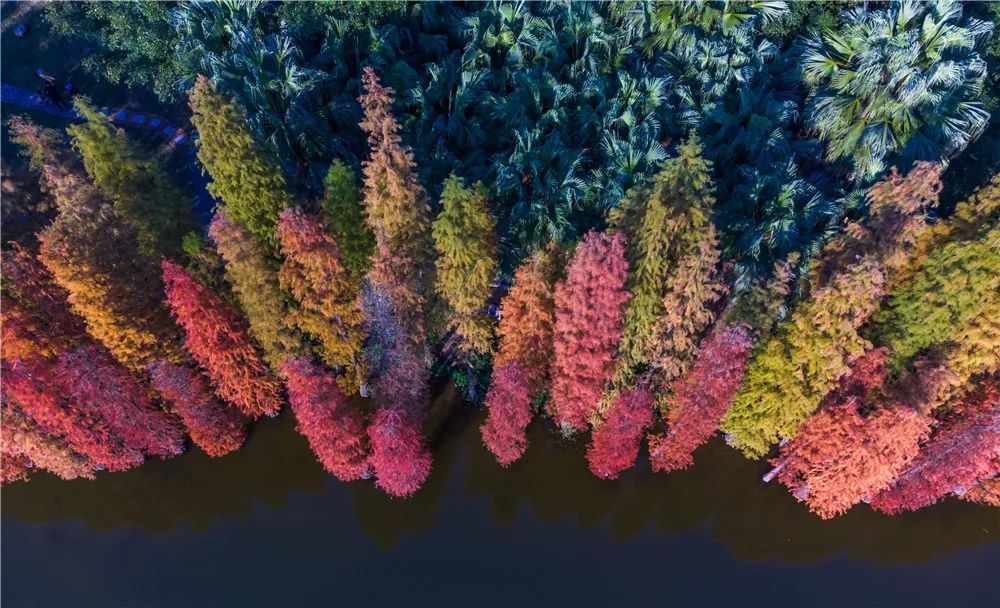 在四季如春的南方,冬日红叶的浪漫实属少见。有“城央绿韵”之称的三水森林公园,最近增添了别样的色彩——南湖的水杉换上了黄红色的衣裳。此番美景错过要再等一年,趁天气正好,快约上小伙伴来打卡冬日美景吧!