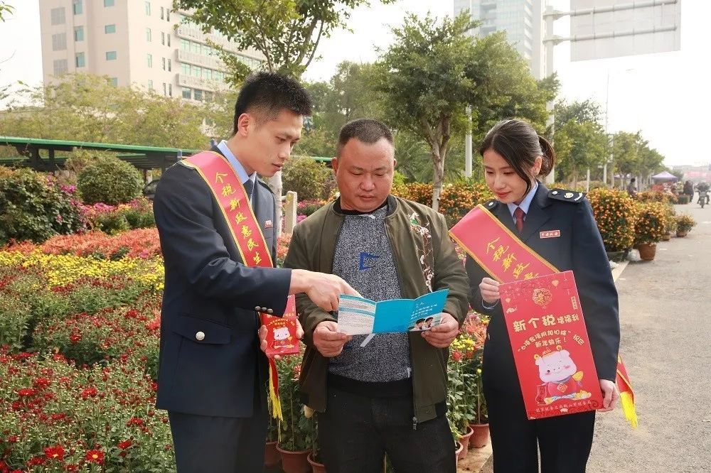 鹤山市税务局走进鹤山迎春花市,开展“个税新政惠民生、改革红利送万家”活动,为花市摊主和市民介绍个税新政、解答热点问题、派发充满年味和税收元素的个税利是封,并借春节向亲朋好友“派利是”的习俗,达到个税宣传二次传播、圈子传播的良好效应,也将个税改革红利和新春美好祝福送给更多市民。