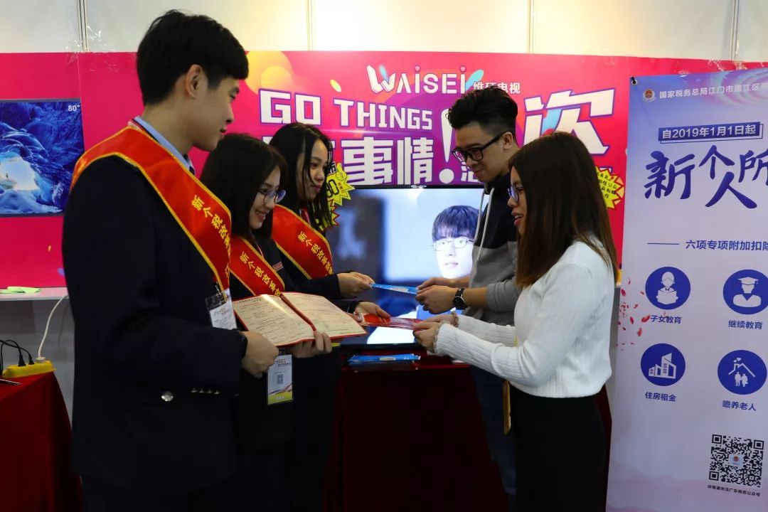蓬江区税务局组织“个税政策新年宣传服务队”,带着个税主题的“利是封”和“新年贺卡”,走进有“珠西第一展”之称的第十届珠中江进出口商品展销会,向参展的粤港澳大湾区企业、“一带一路”沿线国家和地区的商家以及广大市民深入浅出介绍六项专项附加扣除政策,推广个税APP,受到企业和市民的一致好评。