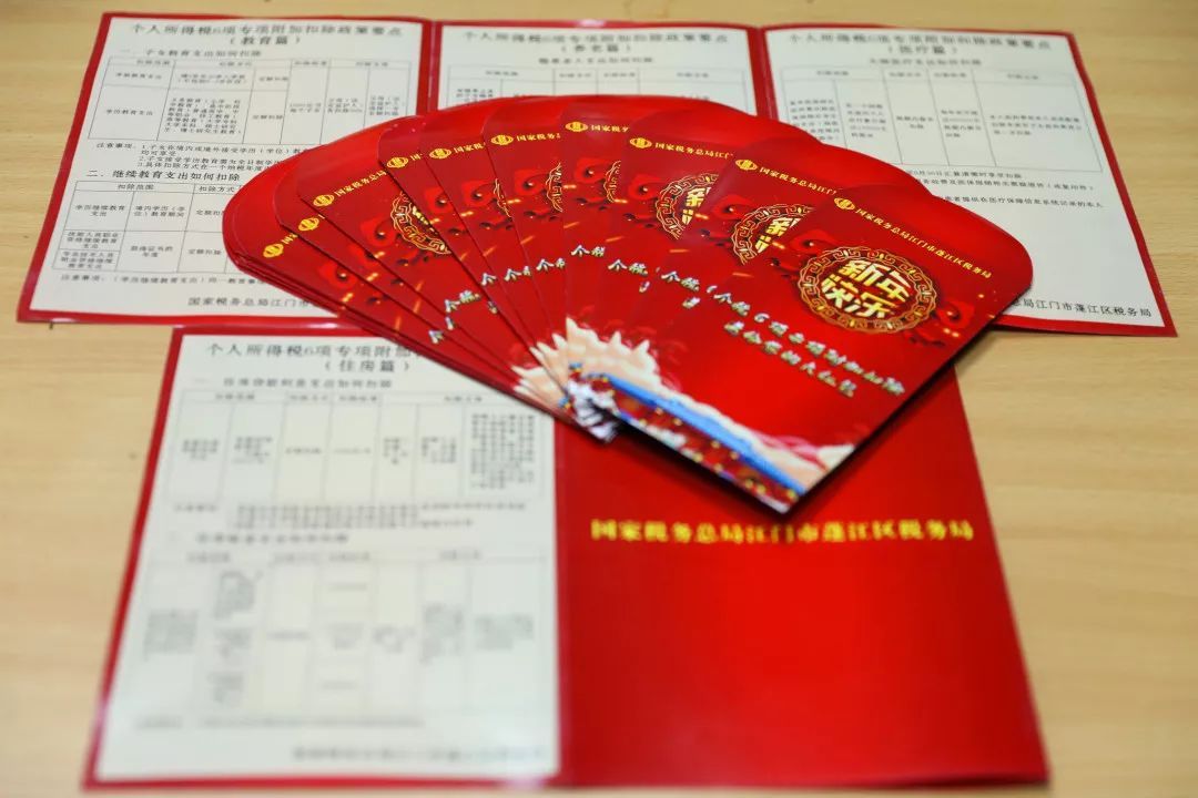 “个税新政惠千户,改革春风暖万家”。江门市税务部门在新春来临之际,以多种方式深入开展税收优惠政策和个税新政宣传辅导,春联、贺卡、利是封等宣传品不仅提升了年味,更是帮助广大纳税人应享尽享改革红利,提前领新春“大红包”。
