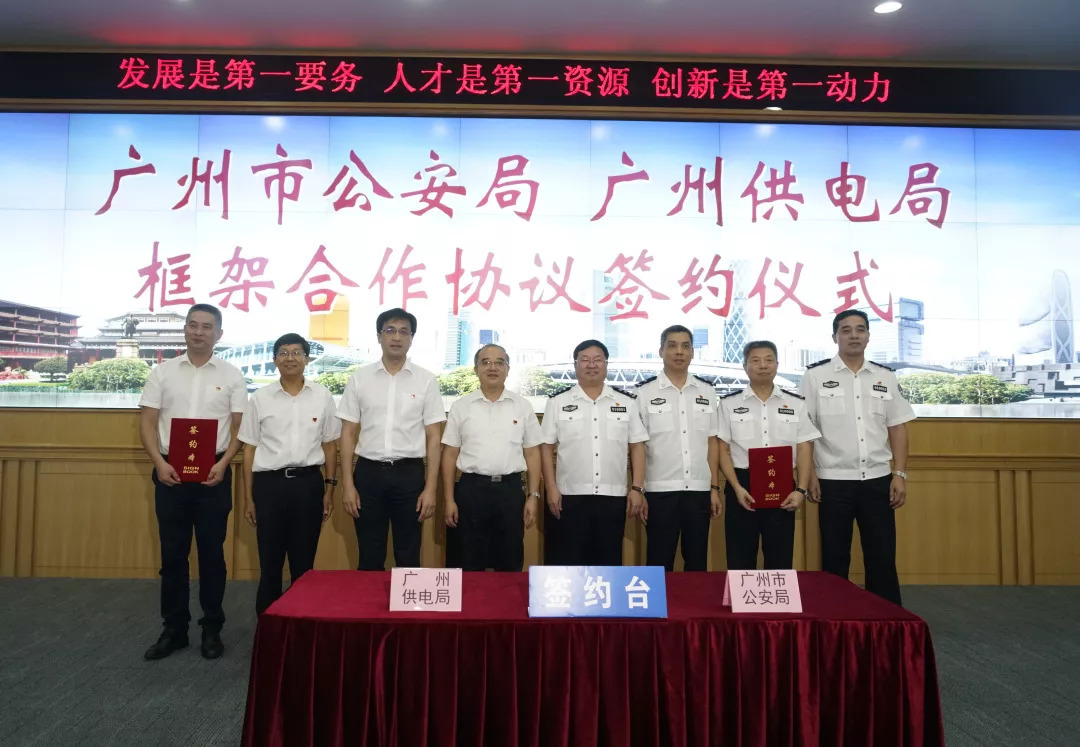 为贯彻落实习近平总书记“在营造共建共治共享社会治理格局走在全国前列”重要讲话精神,进一步深化警企合作、推动最安全稳定城市建设,今天(9月19日)上午,广州市公安局与广州供电局有限公司(以下简称“广州供电局”)举行了战略合作座谈会及框架协议签订仪式。