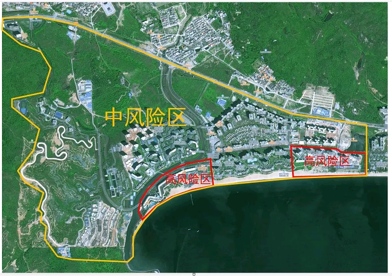 一、从10月5日7:00起,将霞涌街道乌山头绿道艾美酒店入口以东,晓联河以南,华润小径湾营销中心东侧小路以西,小径湾海岸线以北(包括小径湾艾美酒店、商业街、华润小径湾营销中心);霞涌街道华润小径湾观海轩六期21栋西侧通道以东,海润路以南,华润小径湾观海轩六期26栋东侧通道以西,小径湾海岸线以北(包括观海轩六期21、22、23、24、25、26、27、28、29、30栋)划分为高风险区。实行封控措施,期间“足不出户、上门服务”。区域内连续7天无新增感染者,且第7天区域内所有人员完成一轮核酸筛查均为阴性,降为中风险区;连续3天无新增感染者降为低风险区。