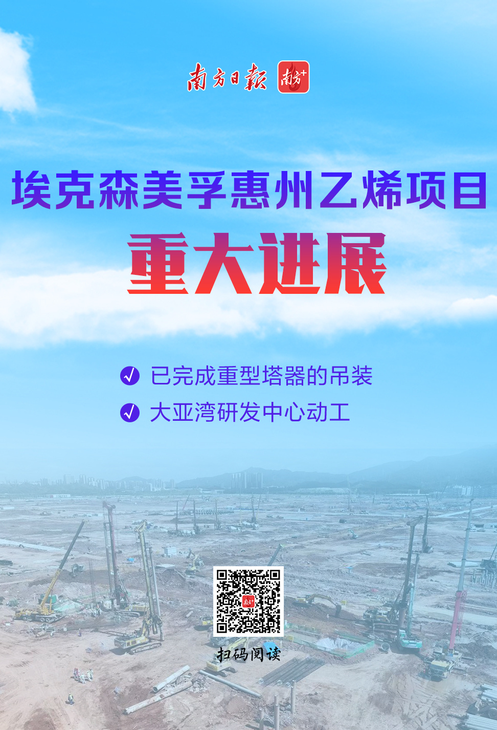 总投资超百亿美元的埃克森美孚惠州乙烯项目迎来重大进展!2月15日,项目重大进展仪式在惠州大亚湾石化区举行,该项目已完成重型塔器吊装,同时在惠州大亚湾开建一座一流的研发中心。