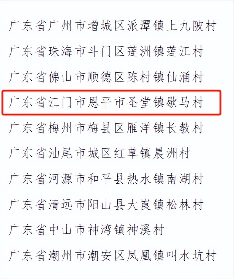 近日,农业农村部网站公布《2023年中国美丽休闲乡村名单》,推介256个村落为2023年中国美丽休闲乡村。其中,江门市恩平市圣堂镇歇马村上榜,是江门市唯一入选的村落。