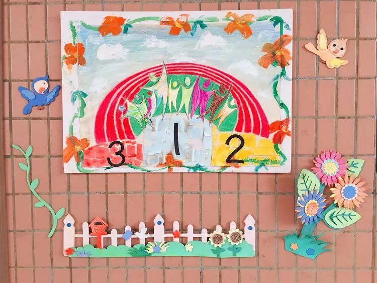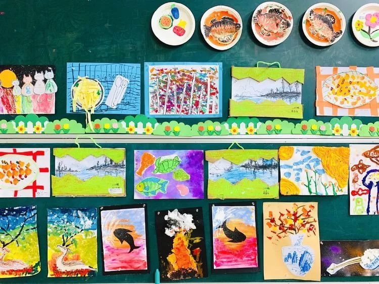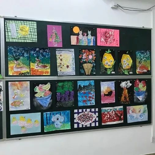 展示墙上陈列着孩子们的画作,体现了他们无穷无尽的想象力。