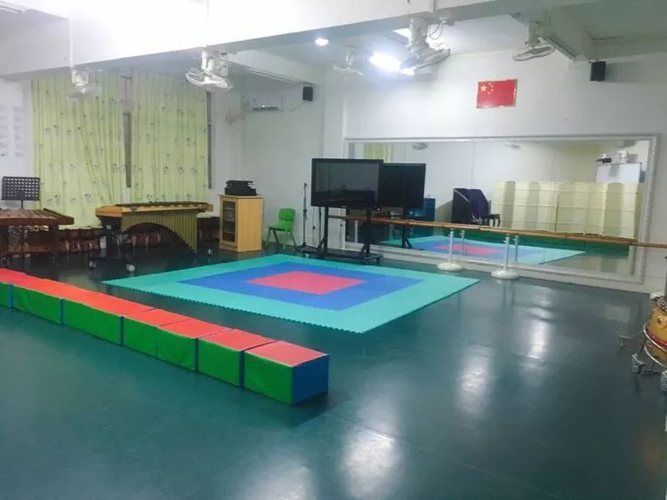 音乐室乐器繁多,拥有非洲鼓、古筝、马林巴木琴、扬琴等。