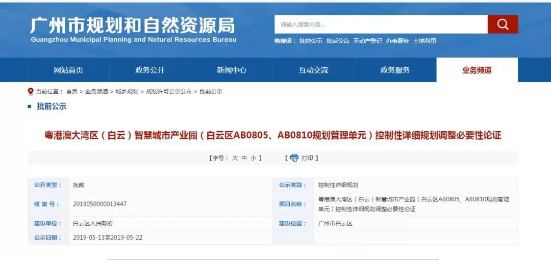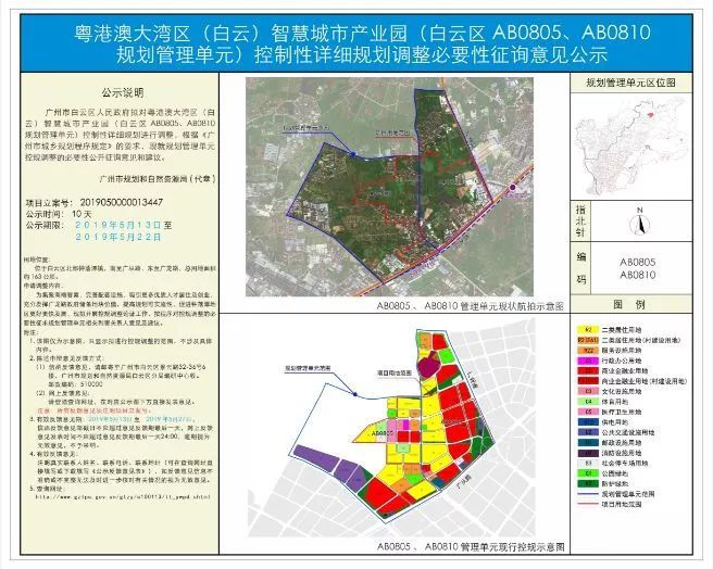 近日,广州市规划和自然资源局发布了《粤港澳大湾区(白云)智慧城市产业园(白云区AB0805、AB0810规划管理单元)控制性详细规划调整必要性论证》批前公示。