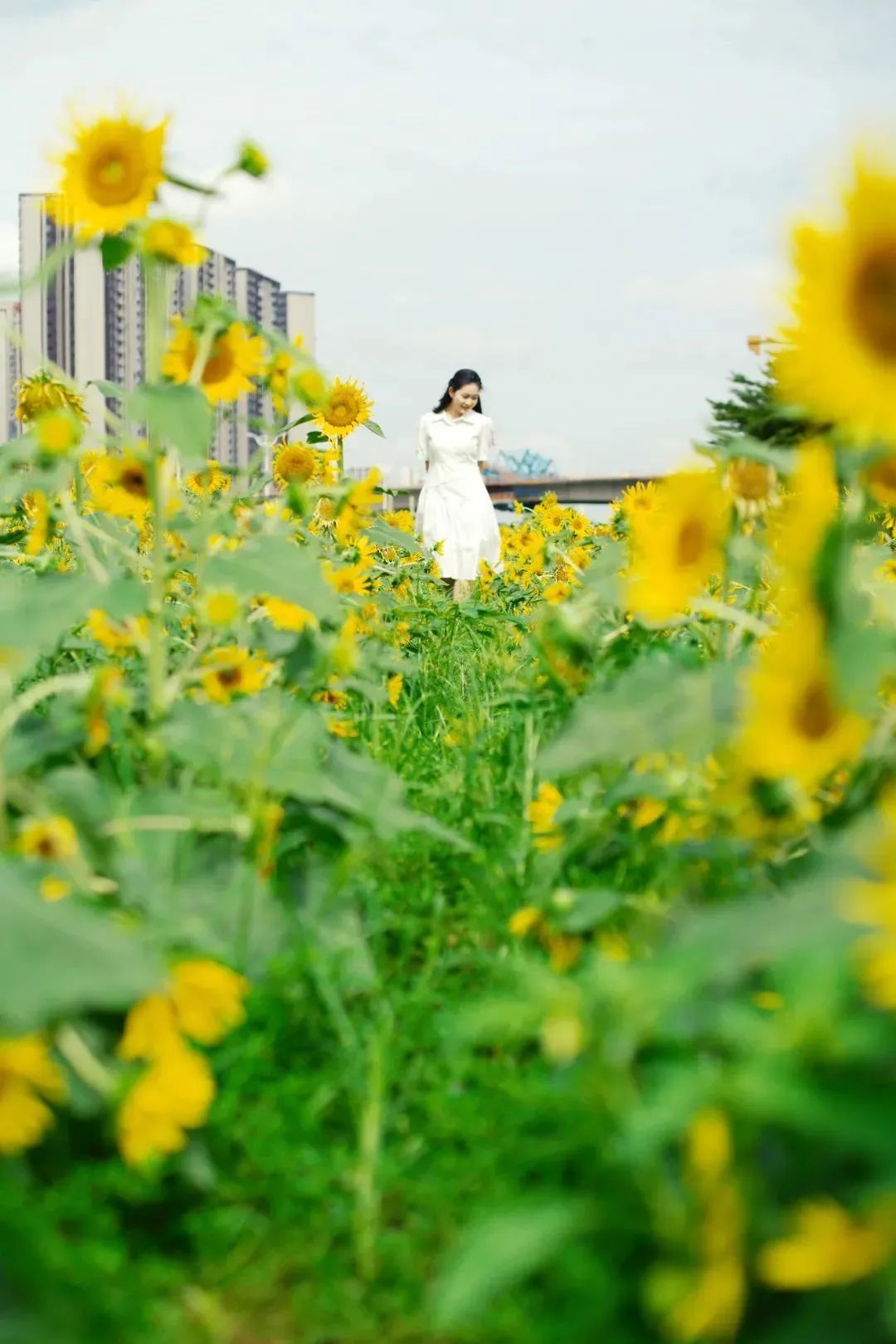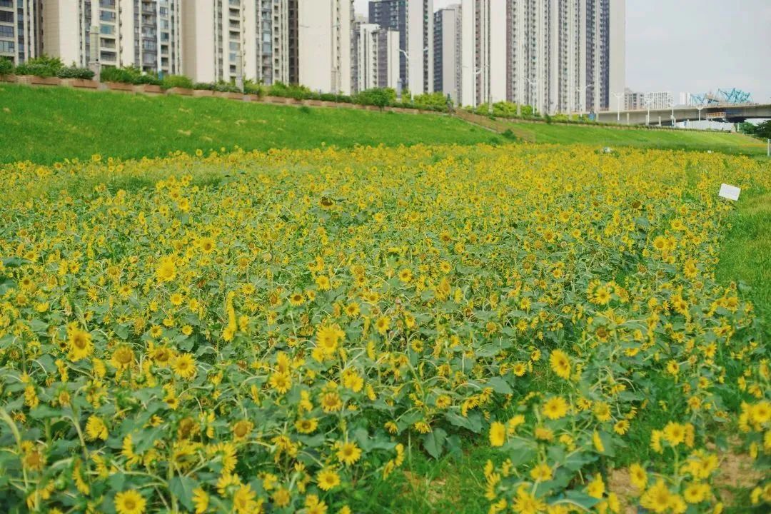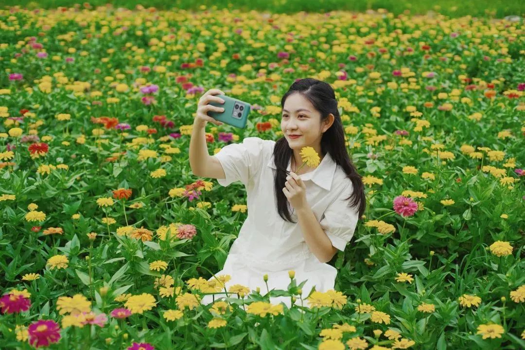 连片的向日葵、百日菊正开得灿烂,一眼望去,视线已被像太阳般浓烈的色彩牢牢抓住,无需滤镜,原片直出便已仿佛置身于油画之中。