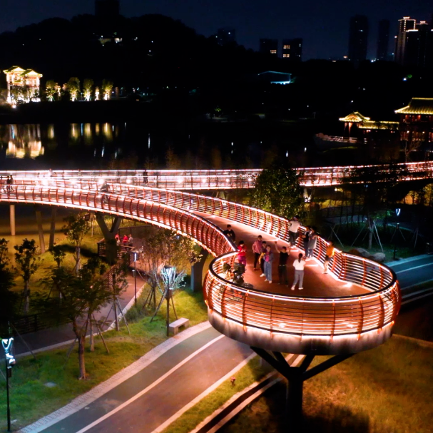 这里有十二座各具特色的桥梁,它们环绕在亚艺湖这颗“绿翡翠”的四周,联起亚艺公园的各个区域,见证了禅城的春夏秋冬。