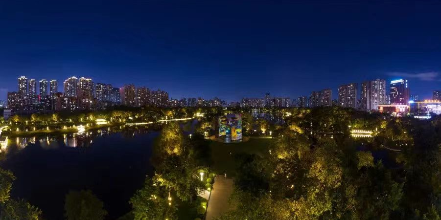 绿岛湖拥有南湖、中心湖两大湖,水体总面积达1500亩。从广阔的上空向下俯视,绿岛湖中心湖的湖心小岛宛若一颗硕大的心脏。这里郁郁葱葱,白鹭齐飞,跳动出极具生命力的律动。