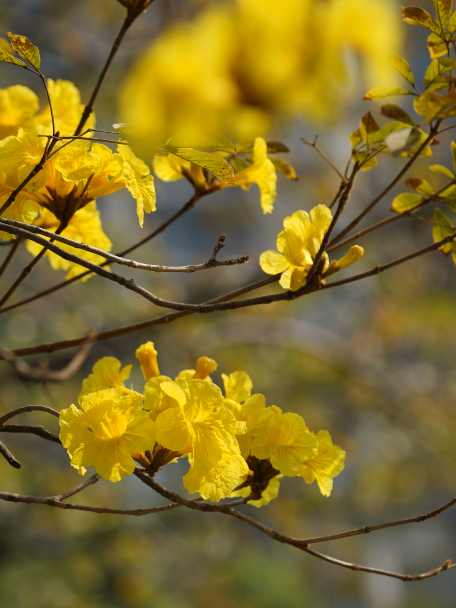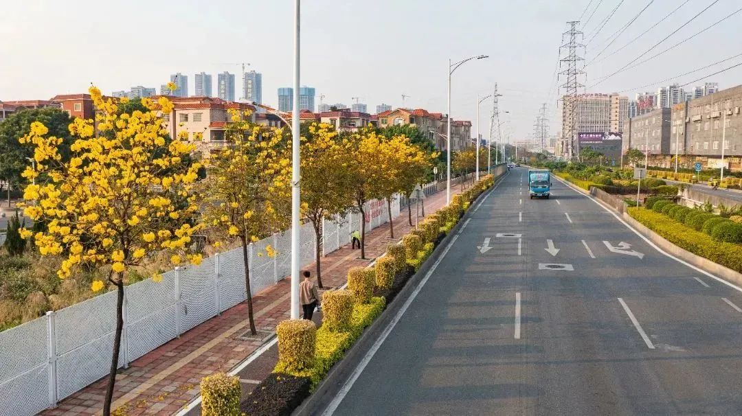 这种“春日换叶”的树叫细叶榄仁,又叫小叶榄仁、非洲榄仁、雨伞树 。属落叶乔木,株高可达10m,其花小而不显著,呈穗状花序,是优良的海岸树种,也常做行道树使用。