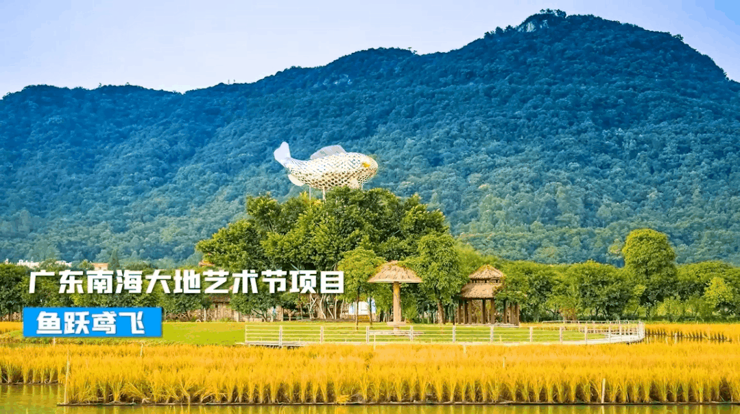 位于渔耕粤韵文化旅游园的广东南海大地艺术节艺术项目《鱼跃鸢飞》,展现着鱼与树、树与塘、塘与鱼互相交织、和谐共存的景象。