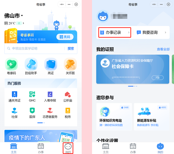 申办成功后可根据短信、微信通知知悉办理进度,或点击“粤省事”微信小程序下方“我的”栏目—“办事记录”查看进度。