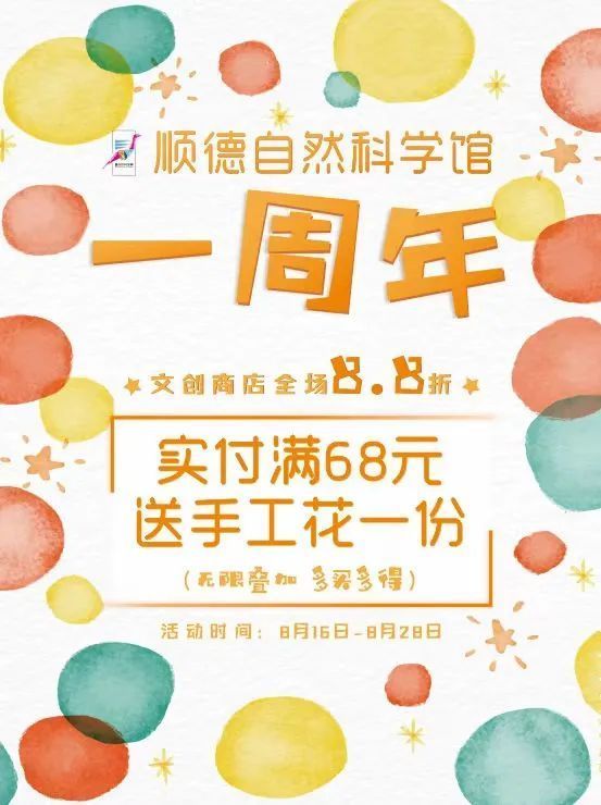即将到来的8月24日是顺德自然科学馆正式对外开放一周年纪念日。为感恩一年来一直支持科学馆的市民朋友们,科学馆将会在接下来的几周面向广大市民举办“一周岁生日会”,诚邀各位大小朋友们前来参加。那生日会将会有什么活动和惊喜呢?一起往下看看吧!
