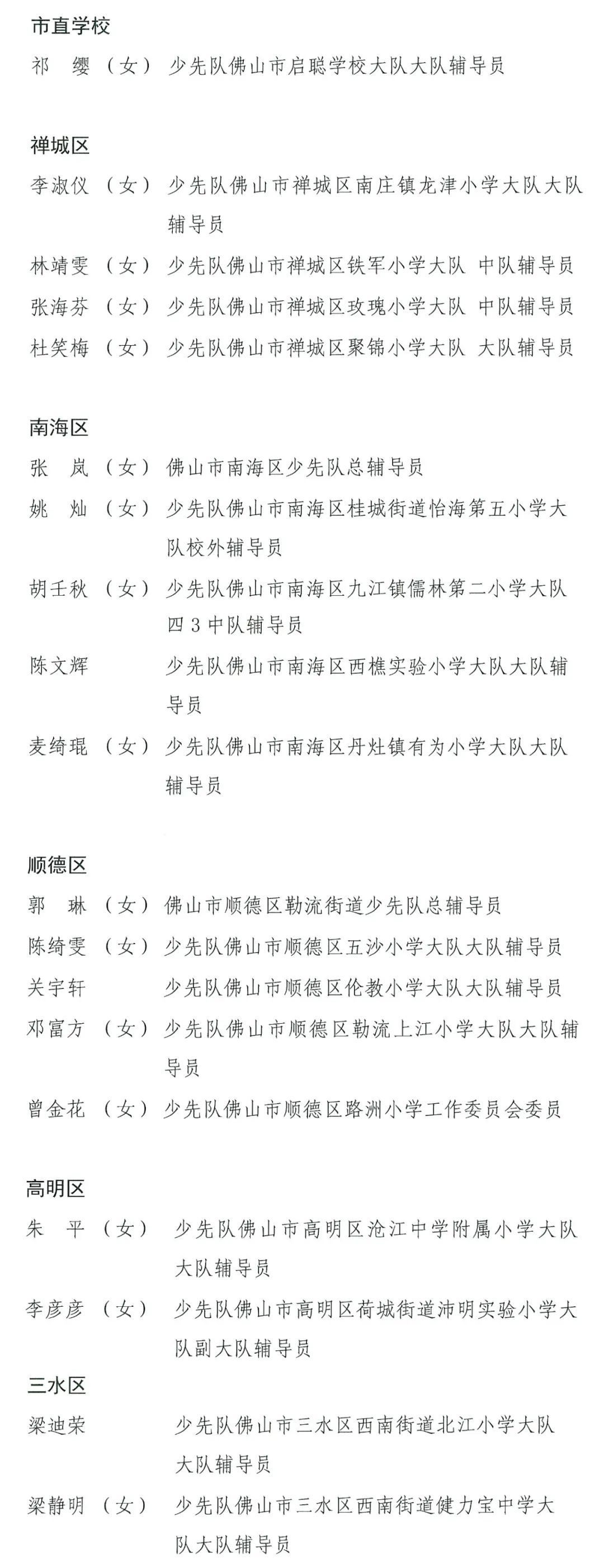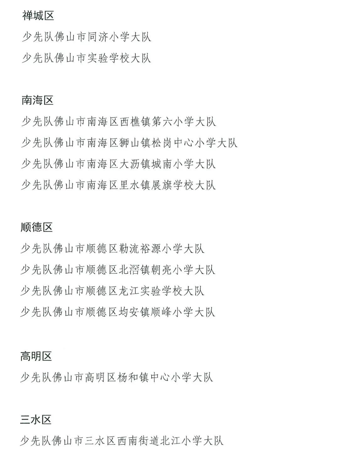 日前,2021-2022年度佛山市少先队先进个人(集体)名单正式公布。