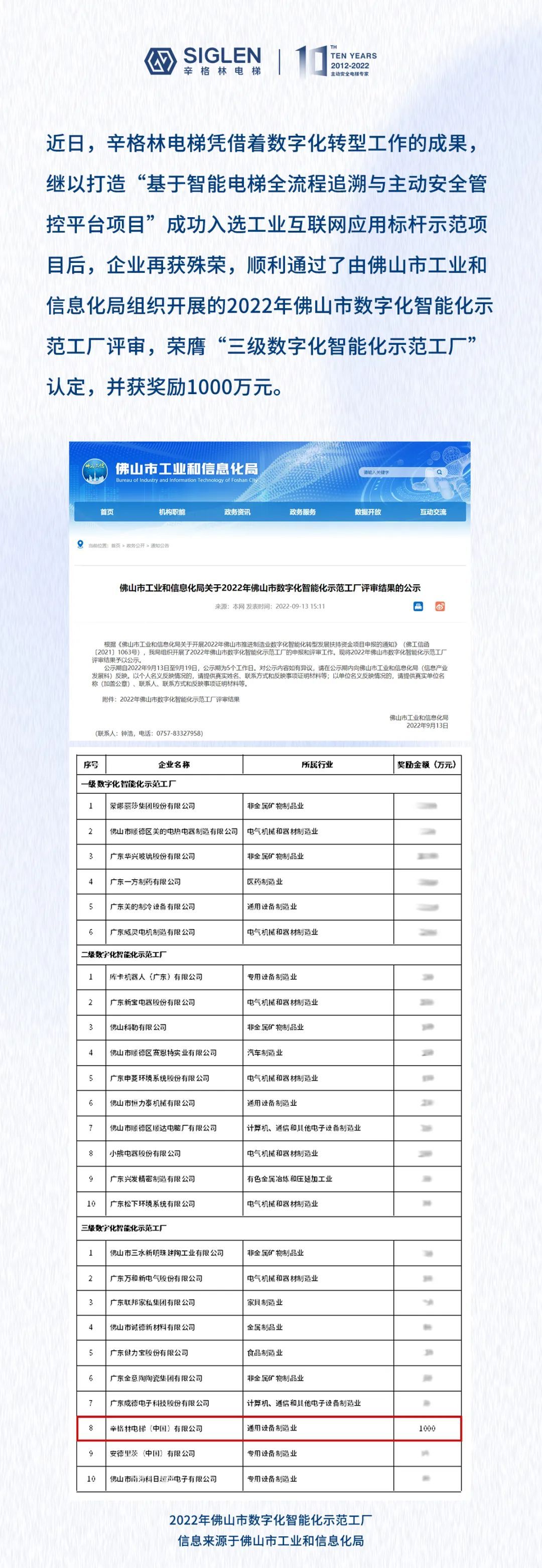 辛格林电梯入选佛山市数字化智能化示范工厂,获千万元奖励