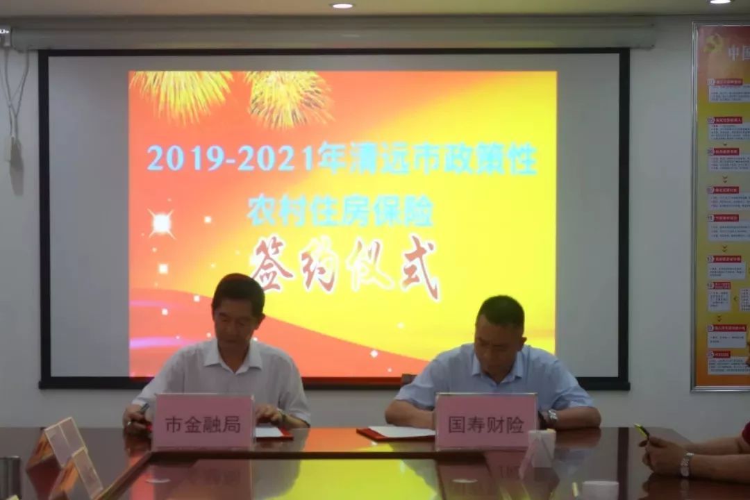 5月22日下午,2019-2021年清远市政策性农村住房保险签约仪式在市金融工作局举行。市金融工作局局长罗伟民、副局长刘晓义,人保财险清远市分公司、国寿财险清远中支公司和阳光农险清远中支公司等3家中标单位负责人出席了签约活动。