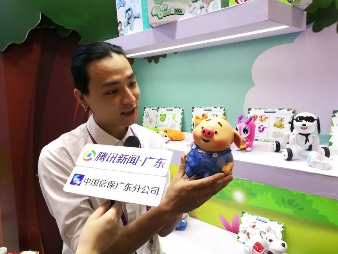 而在实丰文化发展股份有限公司的展位,这里的玩具造型都十分卡通可爱,小哥哥展示了其中一款独创设计的语音玩具,外表粉粉嫩嫩的,电子语音也萌萌哒,玩乐+早教功能融为一体,感觉会很受小朋友的欢迎呢!