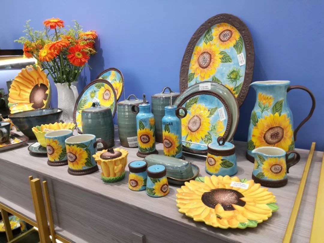 来到广东非凡实业有限公司的展位,一套向日葵为主题的瓷器完美诠释了什么叫“貌美如花”,且触摸的手感非常好,用这么好看的杯子就算一天喝十杯水也不在话下!