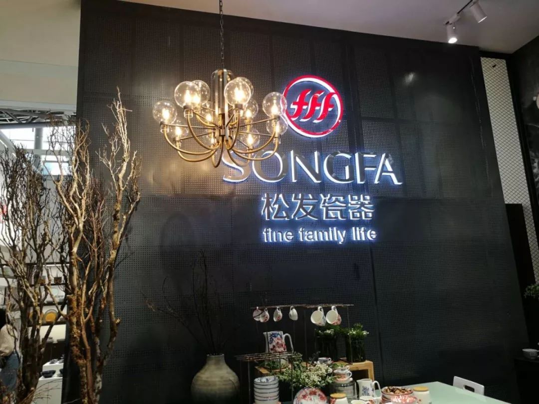 我们继续往前走,来到了广东松发陶瓷股份有限公司的展位~排列了各种类型的餐具、茶具和咖啡器皿,非常多元化!