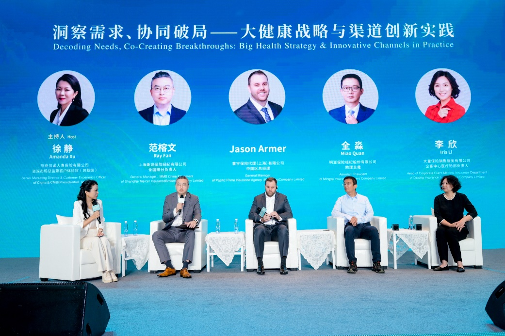 面对DRG改革、产品同质化、渠道效能不足等行业共性问题,招商信诺资深市场总监兼客户体验官(总裁级)徐静主持题为“洞察需求、协同破局——大健康战略与渠道创新实践”圆桌论坛,与上海美世保险经纪有限公司全国排分负责人范榕文,寰宇保险代理(上海)有限公司中国区总经理Jason Armer,明亚保险经纪股份有限公司助理总裁全淼,大童保险销售服务有限公司企客中心医疗险部负责人李欣等四位行业资深专家,共同探讨中高端医疗险的破局路径。
