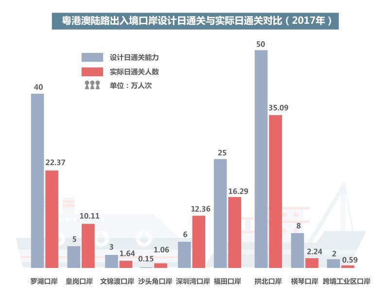 统计数据显示,内地赴港、赴澳旅客人数从2003年的850万人次、510万人次,已分别攀升至2017年的4444万人次、2219万人次,部分出入境口岸设计日通关能力已远低于实际日均通关人数。