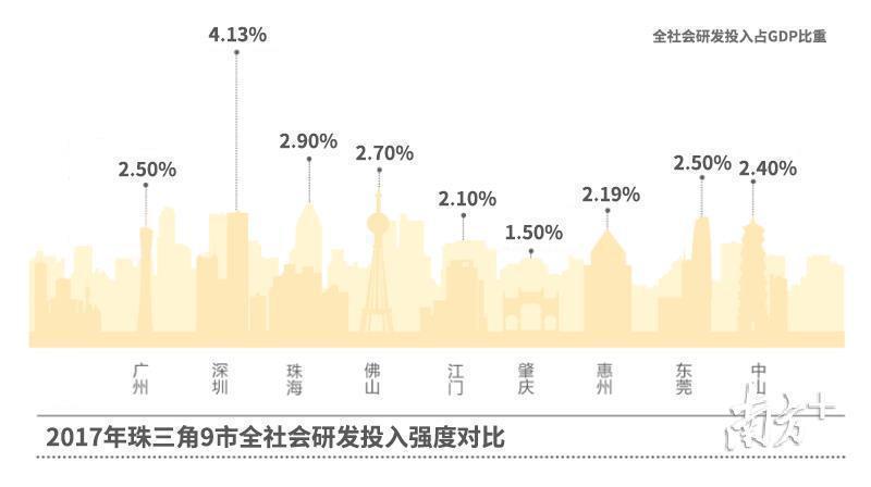 与此同时,广东自身创新实力在不断增强。2017年,广东区域创新综合能力首次跃居全国第一。全省全社会研发投入占GDP比重提升至2.65%,技术自给率达72.5%,有效发明专利、PCT国际专利申请量及专利综合实力连续多年居全国首位,并首次实现牵头完成国家科学技术奖特等奖项目“零的突破”。