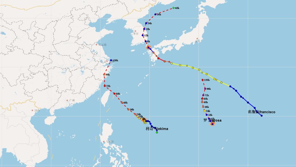 第八号台风“范斯高”第九号台风“利奇马”,加上今日下午14时生成的第十号台风“罗莎”,目前西太上已经上演了一处“三台共舞”,后面还有南海以及孟加拉湾的两个热带扰动在发展,看样子还是很热闹的。