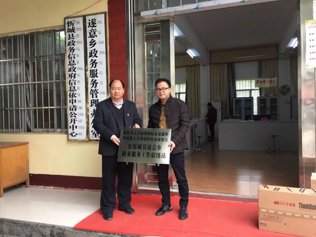 (忻城县遂意乡就业服务工作站现场挂牌仪式)