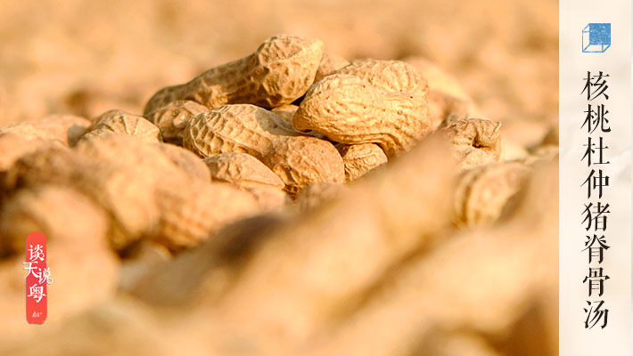 【食材】核桃肉和杜仲各30克,花生肉50克,猪脊骨500克,生姜5片,食盐适量。