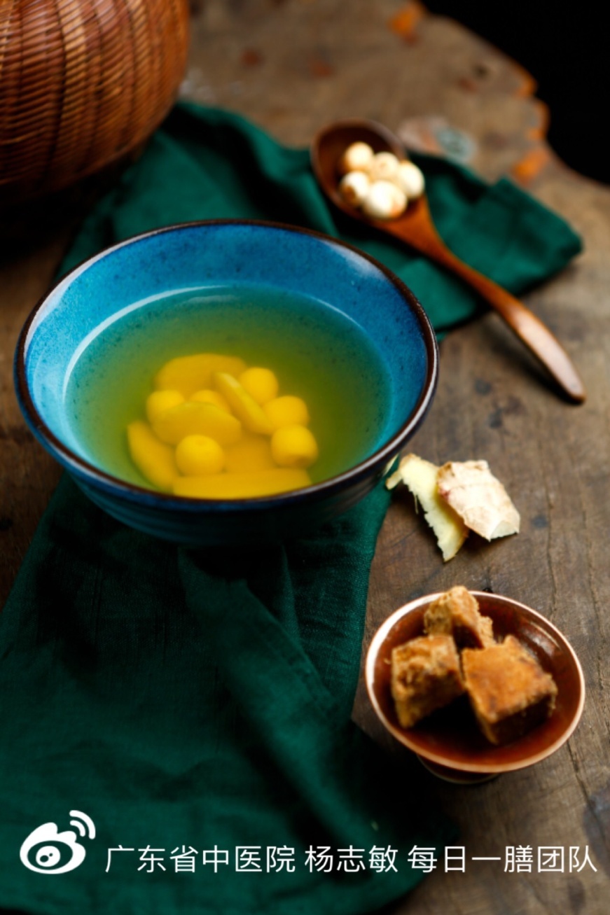 (2)将鲜淮山片、鲜莲子肉放入锅内,加适量清水,用大火煮沸后,调小火煮至熟烂、透,最后加适量姜红糖调味即可。