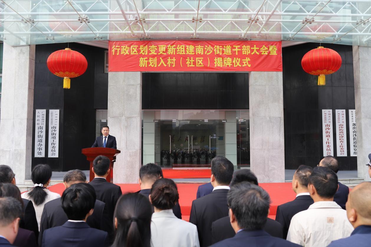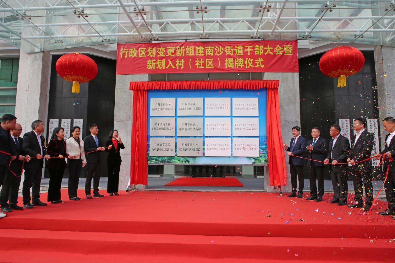 随着南沙区黄阁镇、南沙街道行政区划变更干部大会的成功召开,南沙街道根据《关于加快推进南沙区黄阁镇、南沙街道行政区划变更工作的通知》精神,于12月28日上午举办了行政区划变更新组建南沙街道干部大会暨新划入村(社区)揭牌仪式。南沙区有关领导、相关单位负责人,南沙街道领导班子成员、调研员及各部门、事业单位负责同志等参加揭牌仪式。此次揭牌仪式的举行,标志着南沙街道进一步整合行政资源,细化街道定位,优化力量配置,对加快打造南沙区“湾区之心、开放门户、未来之城”,提高城市精细化管理水平,更好服务广大居民群众具有重要意义。